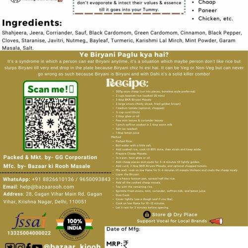 Nawabi Biryani Masala 100g for Authentic Biryani, Bharta, Bhindi, Chicken