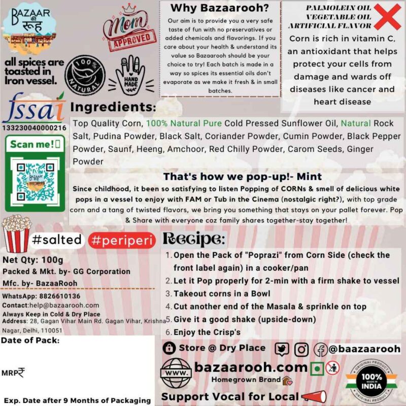 Instant Popcorn is an all time favorite stuff specially when its a time for cozy vibes or a movie night, Poparazi Minty Instant Popcorn brings the magic of cinema vibes at your door with the goodness of Cinema style top quality Popcorns! Gourmet taste because this delightful treat is made from the finest top-grade corn, ensuring that each kernel pops to perfection. We use 100% natural cold-pressed oils (no fats, refined oil or butter) that guarantee purity and lightness instead of greasing, crisp in every bite that speaks itself.